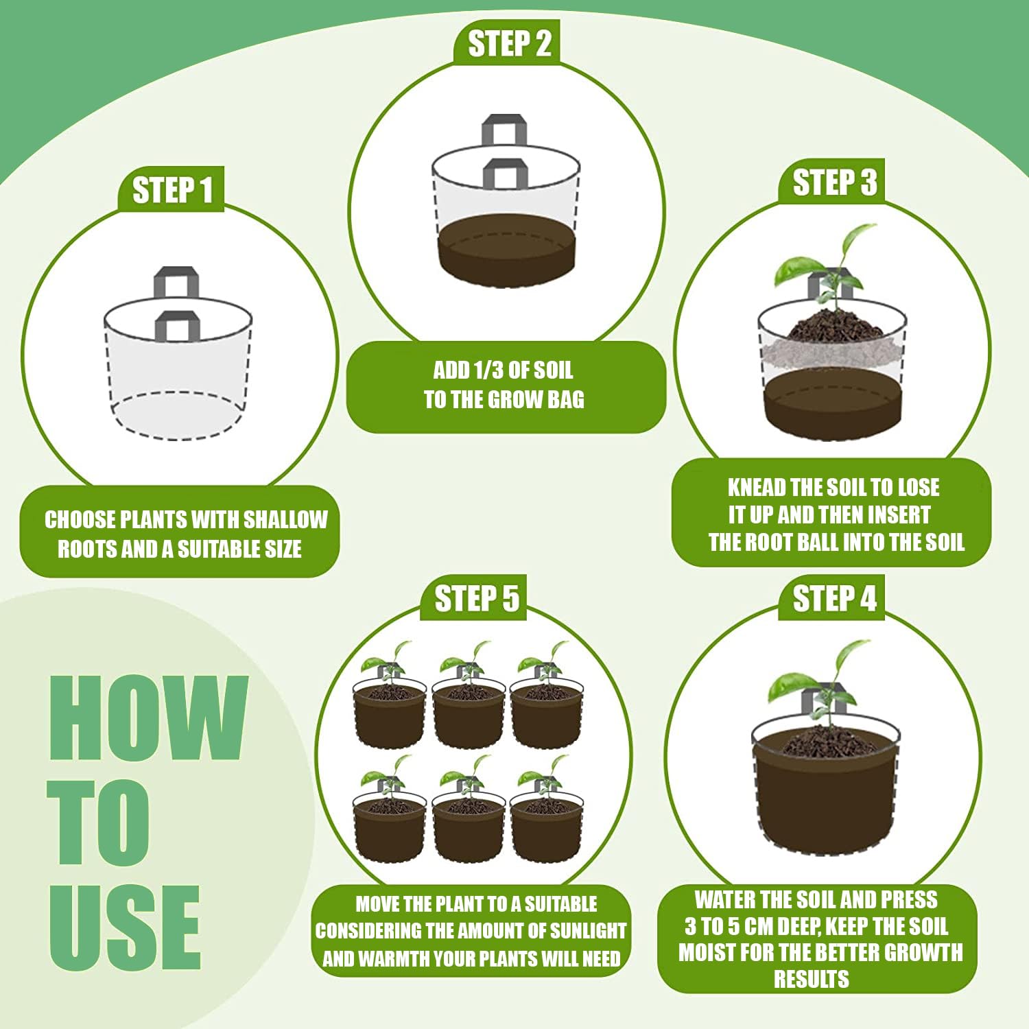 Geo-Grow™ -Geofabric Grow Bags for Planting - 5pcs Combo with FREE 100 VEGETABLE SEEDS MIX VARIETY